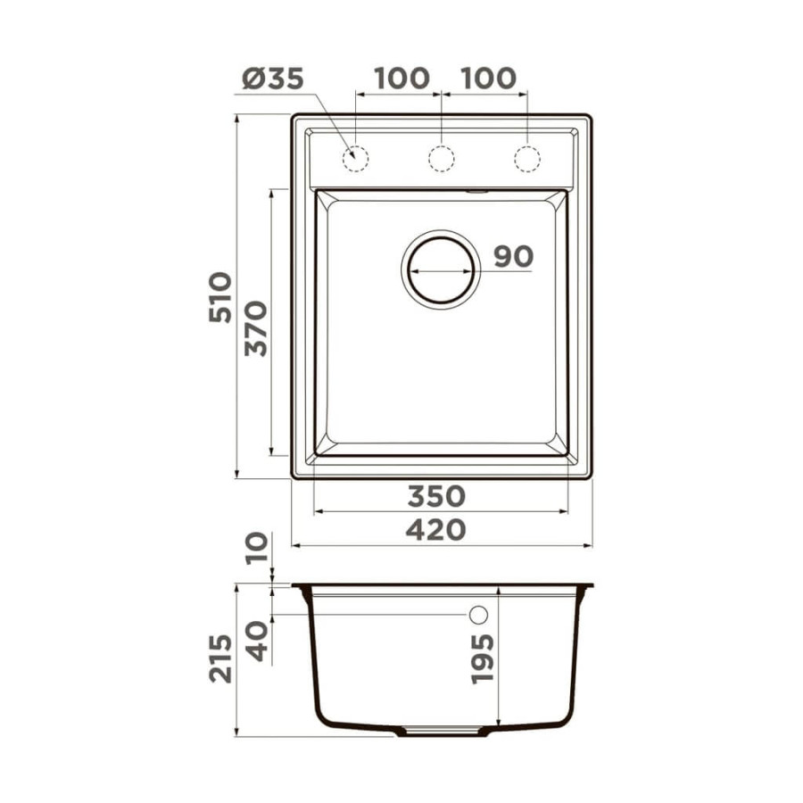| Размеры чаши350 х 370 мм | Способ установкиврезная | Форма мойкипрямоугольная |