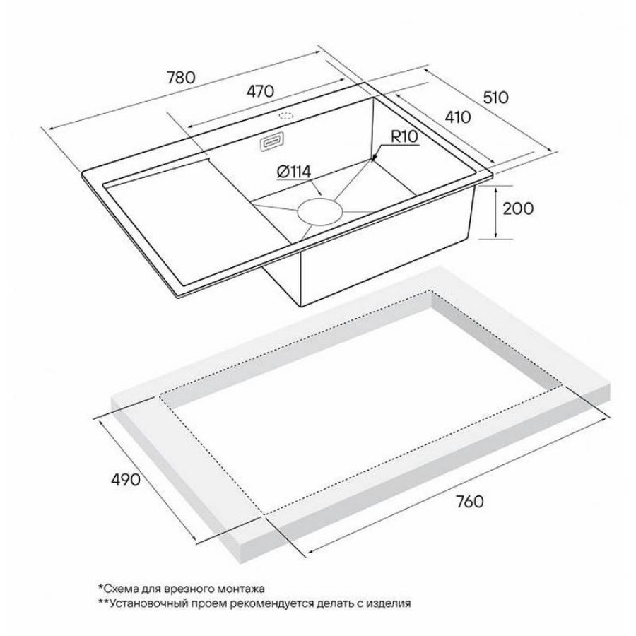 | Способ монтажа | врезная вровень со столешницей, врезная на столешницу |