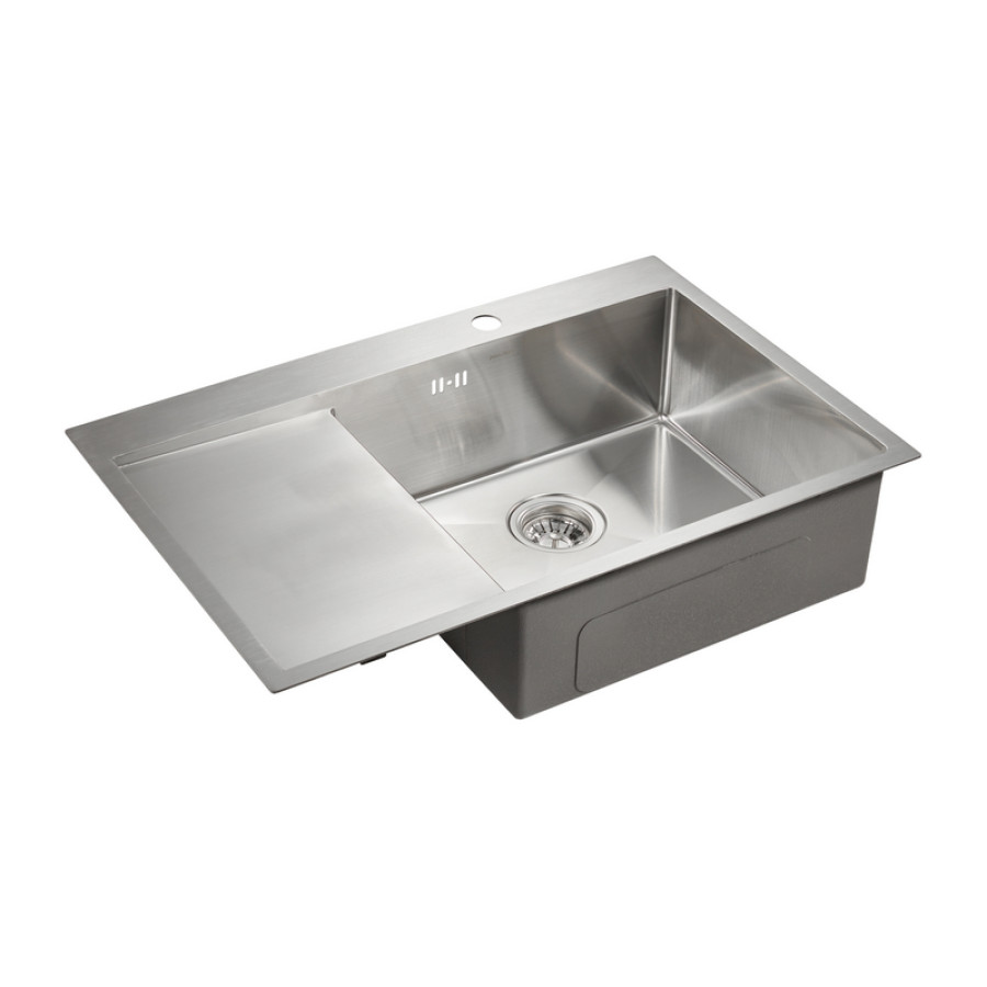 Кухонная мойка ТМ PAULMARK из нержавеющей стали, 3 вида монтажа: врезная на столешницу, врезная вровень со столешницей, врезная под столешницу.Одна чаша, с крылом, чаша справа. Изготовлена из аустенитной нержавеющей стали марки AISI 304, имеющей низкое содержание углерода. Нержавеющая сталь AISI 304 легирована 18% хрома и 8% никеля, что делает данную мойку не подверженной деформации и обеспечивает прекрасные эксплуатационные характеристики. Благодаря использованию стали AISI 304 мойка не подвержена деформации, выдерживает большой вес посуды, продуктов и измельчителя пищевых отходов, устойчива к термическим воздействиям, устойчива к образованию ржавчины, не задерживает загрязнения на поверхности, безопасна для здоровья и легка в уходе и чистке.