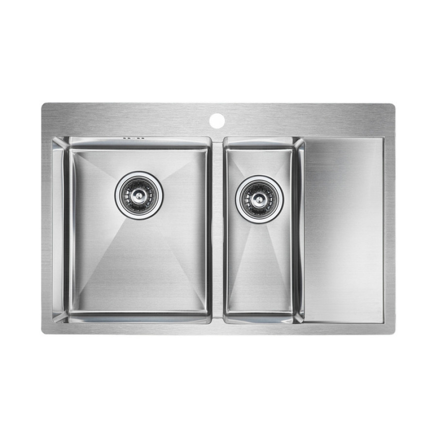 Кухонная мойка ТМ PAULMARK из нержавеющей стали, 2 вида монтажа: врезная на столешницу, врезная вровень со столешницей.Полторы чаши, с крылом, чаша слева. Изготовлена из аустенитной нержавеющей стали марки AISI 304, имеющей низкое содержание углерода. Нержавеющая сталь AISI 304 легирована 18% хрома и 8% никеля, что делает данную мойку не подверженной деформации и обеспечивает прекрасные эксплуатационные характеристики. Благодаря использованию стали AISI 304 мойка не подвержена деформации, выдерживает большой вес посуды, продуктов и измельчителя пищевых отходов, устойчива к термическим воздействиям, устойчива к образованию ржавчины, не задерживает загрязнения на поверхности, безопасна для здоровья и легка в уходе и чистке.