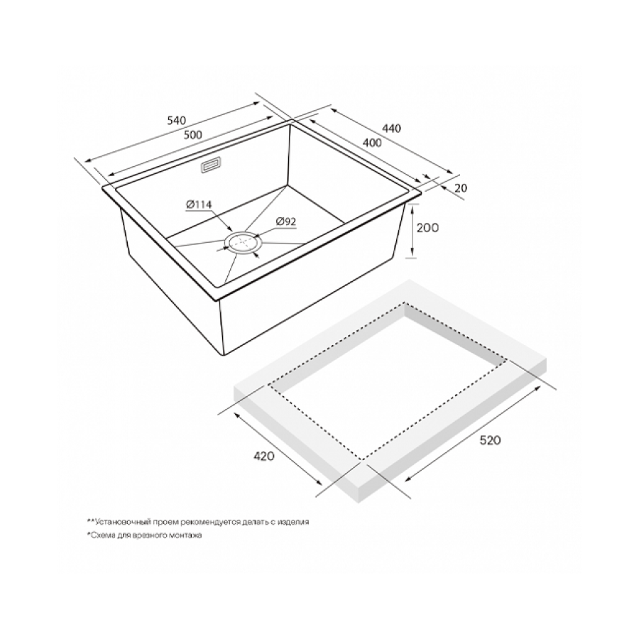 Технические характеристики Кухонная мойка PAULMARK NEXT-540 PM215444-BS (выставочный образец)