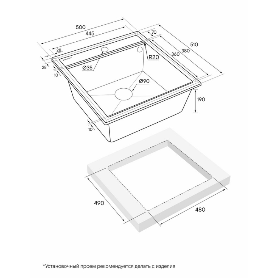 | Форма мойки | прямоугольная |