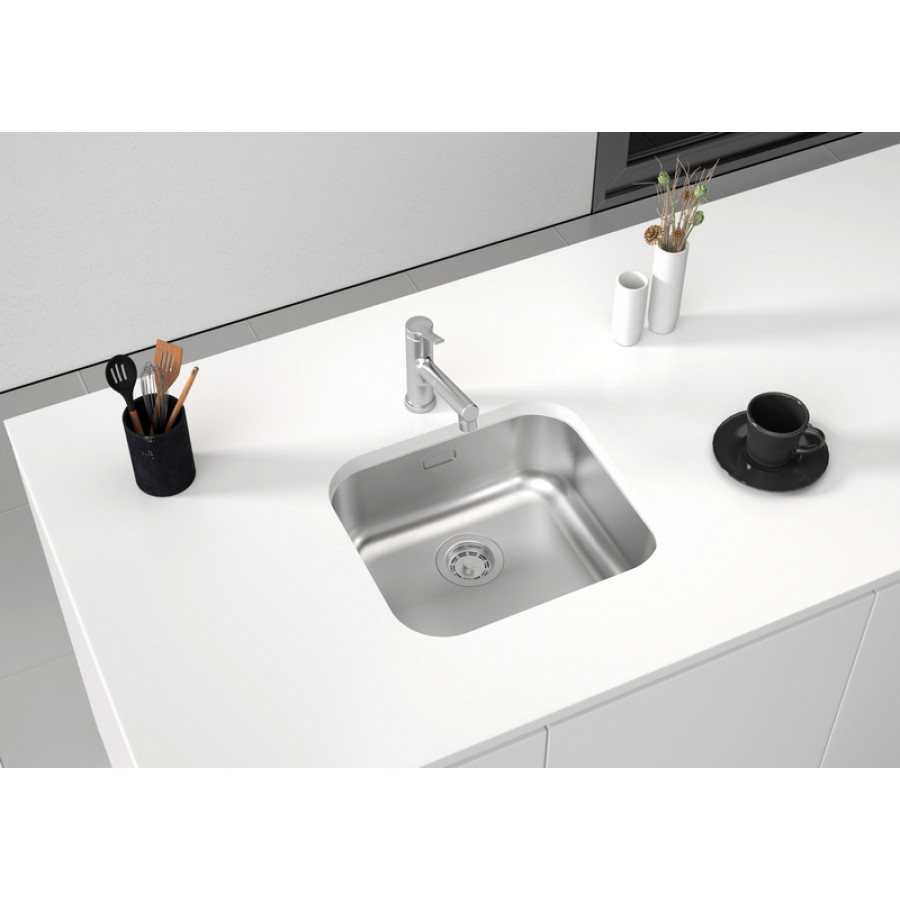 Кухонная мойка ТМ PAULMARK из нержавеющей стали, 2 вида монтажа: врезная на столешницу, врезная под столешницу. Изготовлена из аустенитной нержавеющей стали марки AISI 304, имеющей низкое содержание углерода. Нержавеющая сталь AISI 304 легирована 18% хрома и 8% никеля, что делает данную мойку не подверженной деформации и обеспечивает прекрасные эксплуатационные характеристики. Благодаря использованию стали AISI 304 мойка не подвержена деформации, выдерживает большой вес посуды, продуктов и измельчителя пищевых отходов, устойчива к термическим воздействиям, устойчива к образованию ржавчины, не задерживает загрязнения на поверхности, безопасна для здоровья и легка в уходе и чистке.