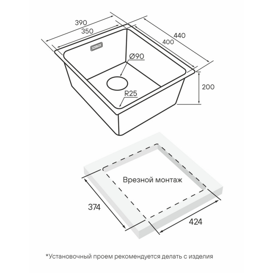 | Способ монтажа | врезная на столешницу, врезная под столешницу |