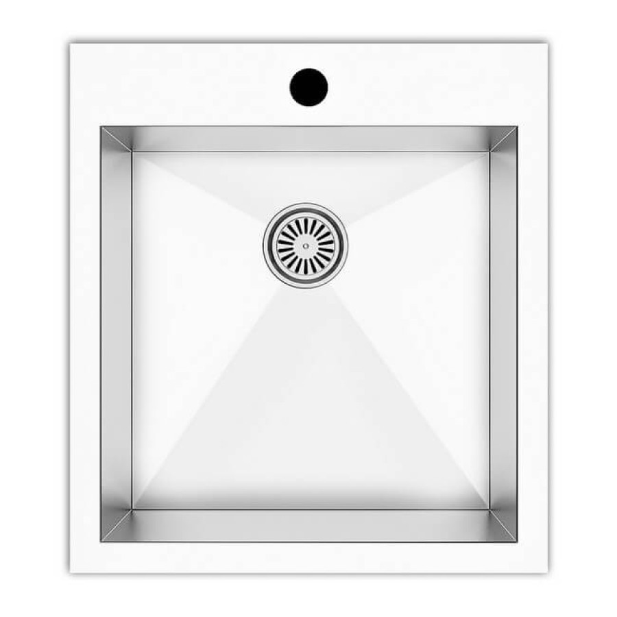 Мойка из нержавеющей стали, HAND MADE. Марка стали AISI 304. Угол чаши R-0. Сифон с выпуском 3 1/2", крепеж. Два вида монтажа: врезная на столешницу, врезная вровень со столешницей.