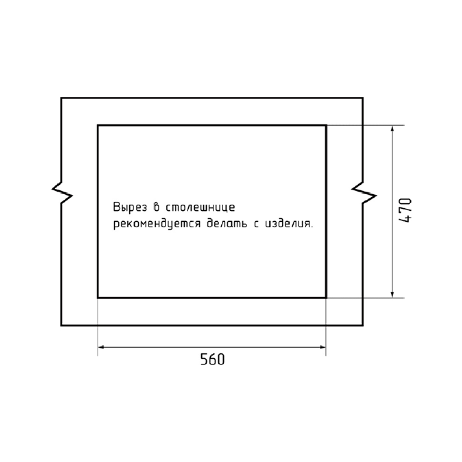 Размер для монтажного вырезаустановочный проём 56 x 47 см |