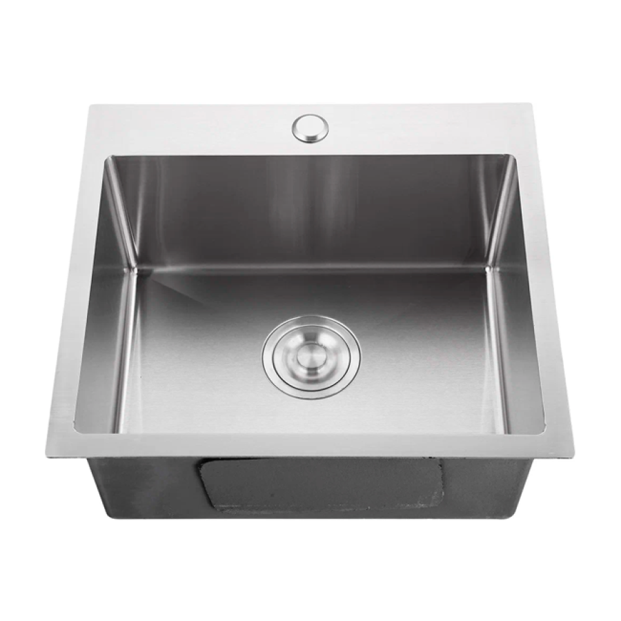 Мойка из нержавеющей стали, прямоугольная, врезная на столешницу, сифон с выпуском 3 1/2" с переливом, без отвода под посудомоечную машину.Поверхность мойки: матовая.Марка стали AISI 304: цвет стальной (цвет производителя: нержавеющая сталь).Толщина стали на отбортовке 3 мм., толщина стали в чаше 1,2 мм.