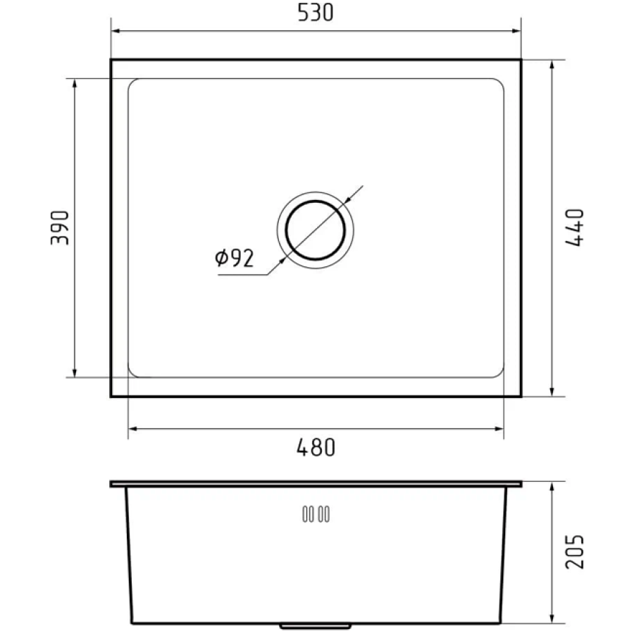 Мойка из нержавеющей стали, прямоугольная, два вида монтажа: врезная на столешницу, врезная под столешницу, сифон с выпуском 3 1/2" с переливом, без отвода под посудомоечную машину.Поверхность мойки: матовая PVD.Марка стали AISI 304 PVD: цвет черный (цвет производителя: графит) Толщина стали на отбортовке 3 мм., толщина стали в чаше 1,2 мм.
