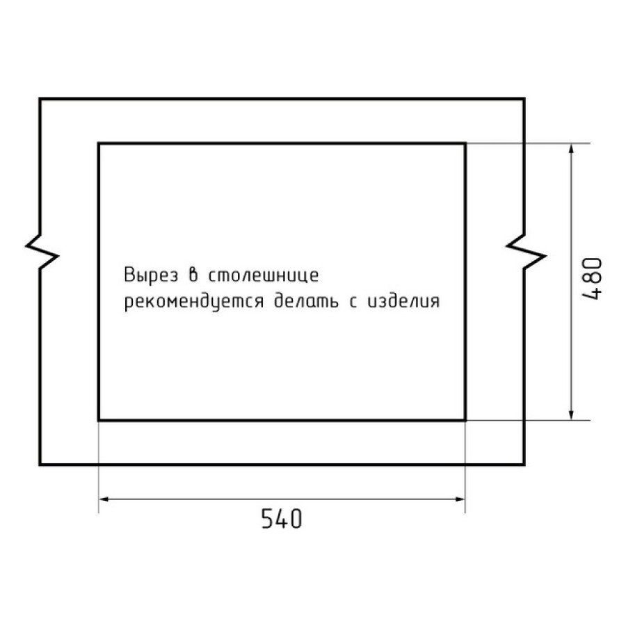| Размер для монтажного выреза54 x 48 см | Размер чаши48.5х35.7х19 см | Способ монтажаврезная на столешницу |