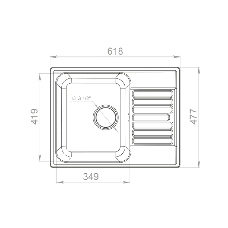 | Глубина чаши, см18 | Диаметр выпуска3 1/2' | Длина, см61.8 |