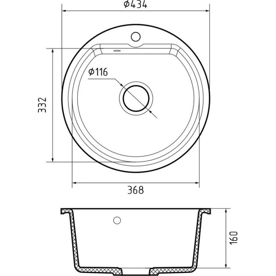 | Глубина чаши, см18 | Диаметр выпуска3 1/2" | Длина, см43.4 |