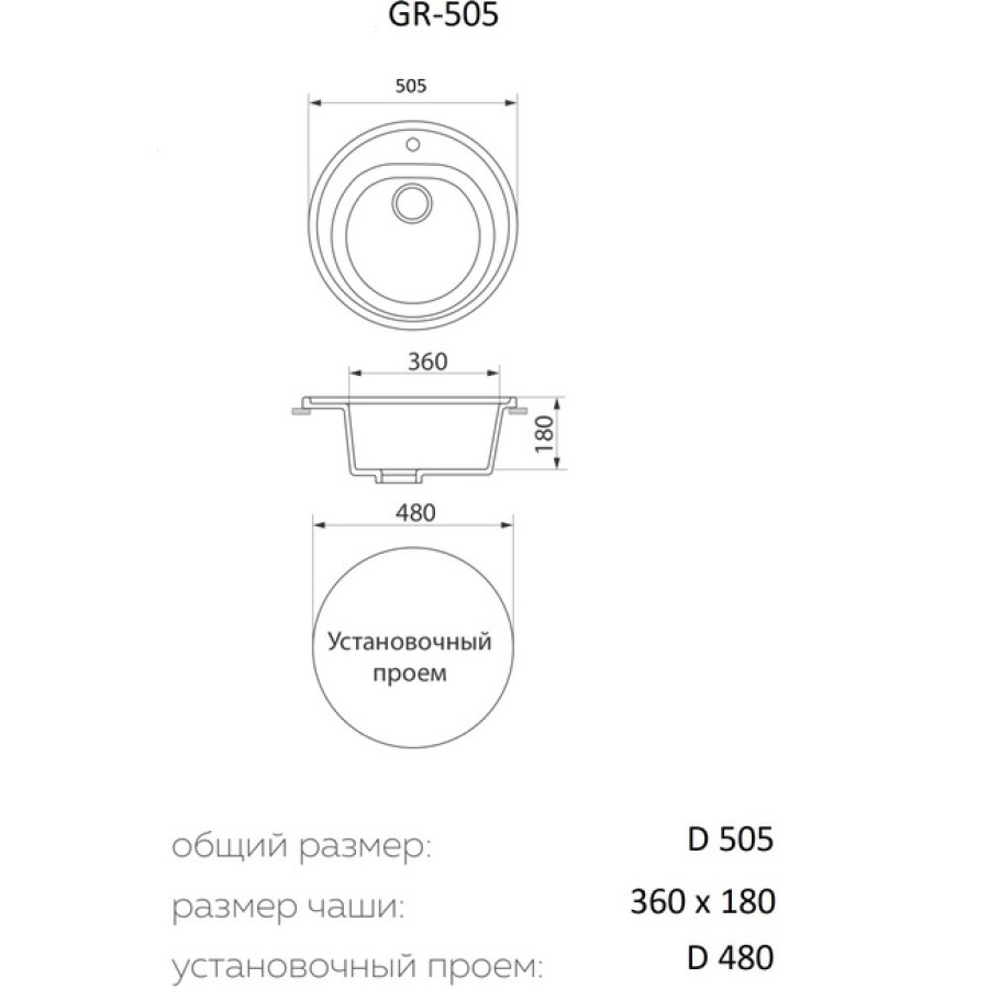 Технические характеристики Мойка кухонная GRANRUS GR-505 (белый)