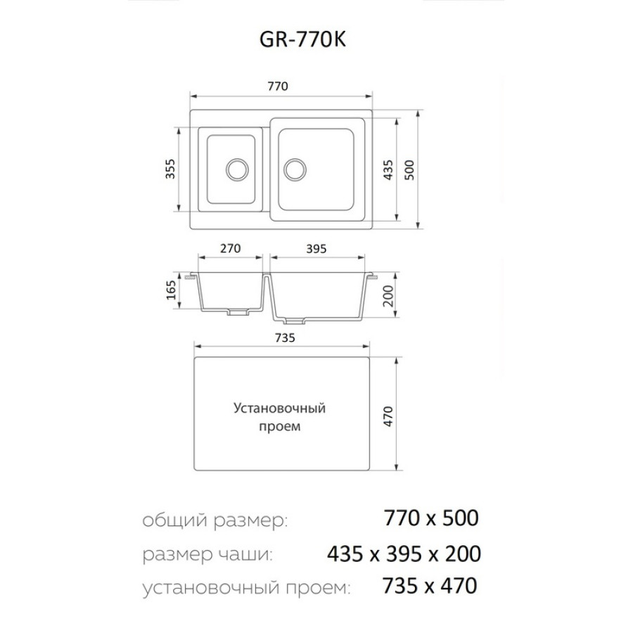 Технические характеристики Мойка кухонная GRANRUS GR-770 K (черный)