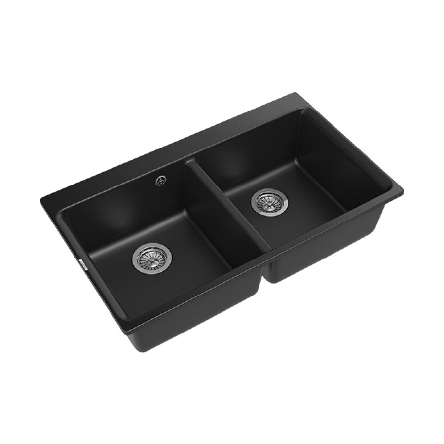 Кухонная мойка TM RIVELATO, врезная на столешницу, прямоугольная, две чаши.Исполнение: цвет: черный (цвет производителя: antracite/антрацит). Мойки ТМ RIVELATO чрезвычайно элегантны и придают естественный вид вашей кухне. Обработанный гранит отличается нежным блеском, он теплый на ощупь. Поверхность прекрасным образом текстурирована, но при этом не имеет пор, что обеспечивает ее высокие гигиенические свойства. Состоящий из 80% кварца и 20% чрезвычайно твердой акриловой смолы, износостойкий материал моек ТМ RIVELATO будет дарить вам свою красоту на протяжении многих лет эксплуатации, сохраняя первоначальный внешний вид и глубину цвета. Мойки из кварцевой крошки от RIVELATO обработаны специальным биоцидным составом на основе ионов серебра -это позволяет уменьшить рост бактерий и микробов на поверхности мойки до 99%. В то же время IT-GRANIT® остается устойчивым к ударам, царапинам, образованию пятен и обесцвечиванию, устойчив к уф-излучению и воздействию высоких температур вплоть до 280° С. Чтобы поверхность мойки из кварца выглядела как новая, достаточно просто протереть поверхность круговыми движениями смоченной в мыльном растворе нейлоновой щеткой и затем тщательно промыть поверхность проточной водой. При уходе за изделиями из кварца не рекомендуется использовать абразивные составы, порошки, отбеливающие растворы и средства для удаления засоров дренажных труб.