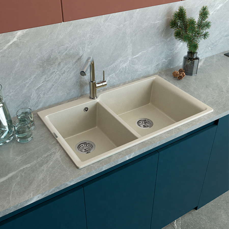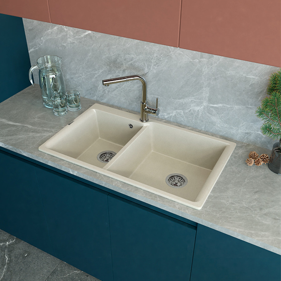 Кухонная мойка TM RIVELATO, врезная на столешницу, прямоугольная, полторы чаши, чаша справа.Исполнение: цвет: бежевый (цвет производителя: beige scuro/темно-бежевый). Мойки ТМ RIVELATO чрезвычайно элегантны и придают естественный вид вашей кухне. Обработанный гранит отличается нежным блеском, он теплый на ощупь. Поверхность прекрасным образом текстурирована, но при этом не имеет пор, что обеспечивает ее высокие гигиенические свойства. Состоящий из 80% кварца и 20% чрезвычайно твердой акриловой смолы, износостойкий материал моек ТМ RIVELATO будет дарить вам свою красоту на протяжении многих лет эксплуатации, сохраняя первоначальный внешний вид и глубину цвета. Мойки из кварцевой крошки от RIVELATO обработаны специальным биоцидным составом на основе ионов серебра -это позволяет уменьшить рост бактерий и микробов на поверхности мойки до 99%. В то же время IT-GRANIT® остается устойчивым к ударам, царапинам, образованию пятен и обесцвечиванию, устойчив к уф-излучению и воздействию высоких температур вплоть до 280° С. Чтобы поверхность мойки из кварца выглядела как новая, достаточно просто протереть поверхность круговыми движениями смоченной в мыльном растворе нейлоновой щеткой и затем тщательно промыть поверхность проточной водой. При уходе за изделиями из кварца не рекомендуется использовать абразивные составы, порошки, отбеливающие растворы и средства для удаления засоров дренажных труб.