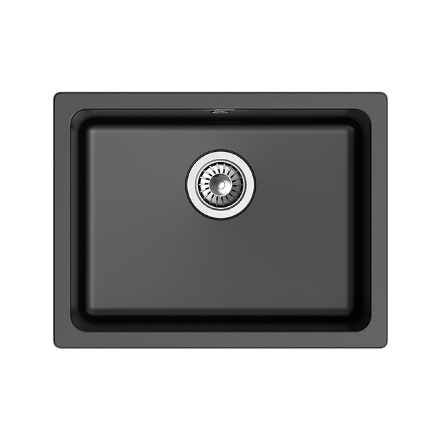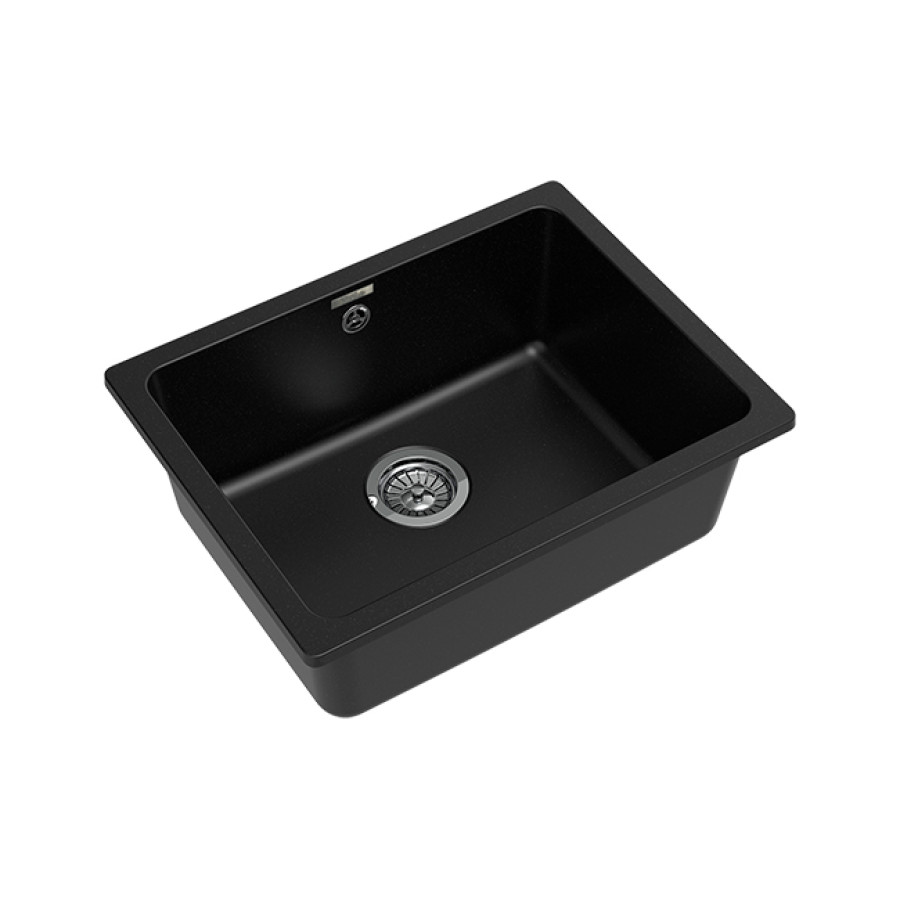 Кухонная мойка TM RIVELATO, два вида монтажа: врезная на столешницу,врезная под столешницу, прямоугольная.Исполнение: цвет: черный (цвет производителя: nero/черный). Мойки ТМ RIVELATO чрезвычайно элегантны и придают естественный вид вашей кухне. Обработанный гранит отличается нежным блеском, он теплый на ощупь. Поверхность прекрасным образом текстурирована, но при этом не имеет пор, что обеспечивает ее высокие гигиенические свойства. Состоящий из 80% кварца и 20% чрезвычайно твердой акриловой смолы, износостойкий материал моек ТМ RIVELATO будет дарить вам свою красоту на протяжении многих лет эксплуатации, сохраняя первоначальный внешний вид и глубину цвета. Мойки из кварцевой крошки от RIVELATO обработаны специальным биоцидным составом на основе ионов серебра -это позволяет уменьшить рост бактерий и микробов на поверхности мойки до 99%. В то же время IT-GRANIT® остается устойчивым к ударам, царапинам, образованию пятен и обесцвечиванию, устойчив к уф-излучению и воздействию высоких температур вплоть до 280° С. Чтобы поверхность мойки из кварца выглядела как новая, достаточно просто протереть поверхность круговыми движениями смоченной в мыльном растворе нейлоновой щеткой и затем тщательно промыть поверхность проточной водой. При уходе за изделиями из кварца не рекомендуется использовать абразивные составы, порошки, отбеливающие растворы и средства для удаления засоров дренажных труб.