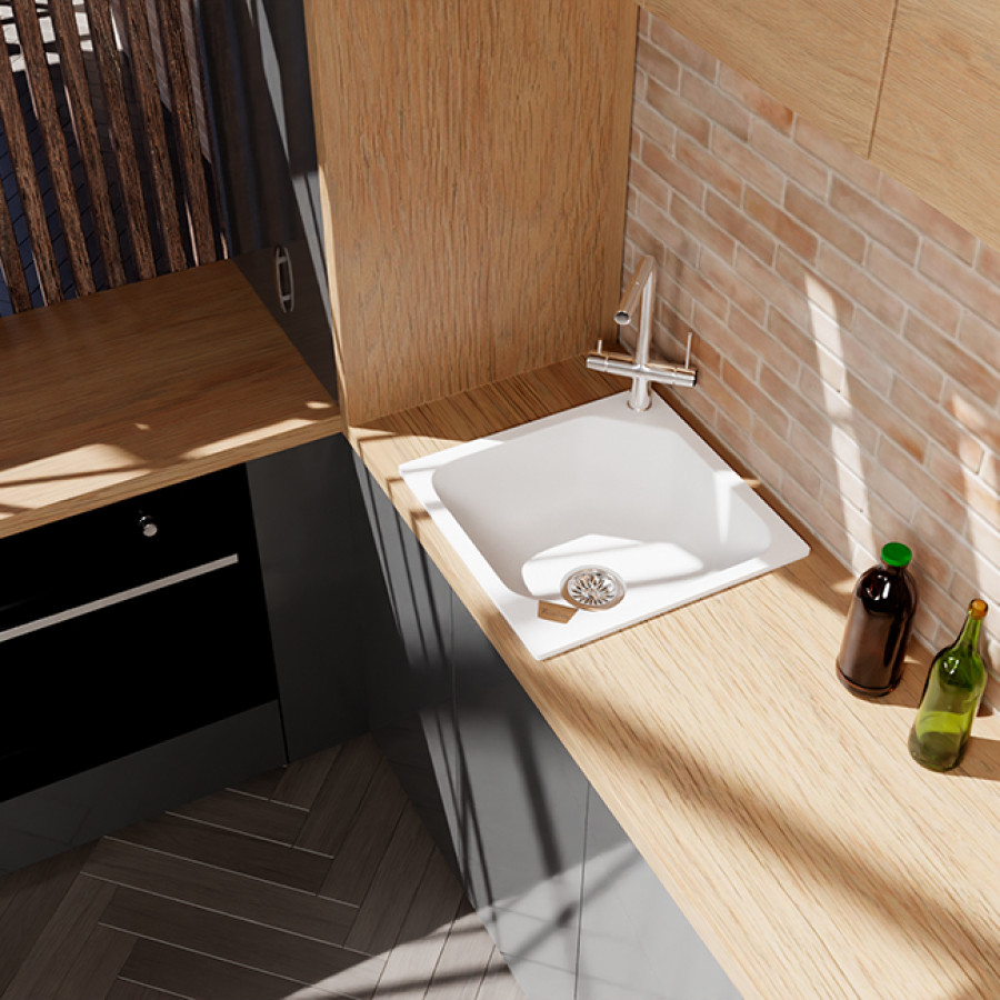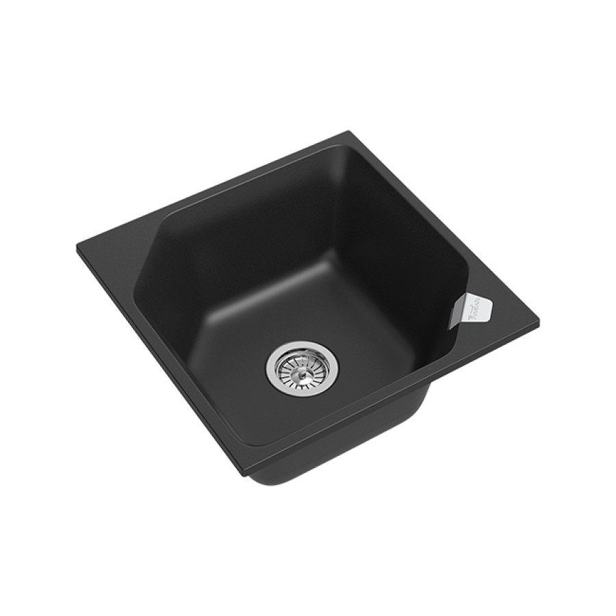 Кухонная мойка TM RIVELATO, врезная на столешницу, квадатная.Исполнение: цвет: черный (цвет производителя: antracite/антрацит). Мойки ТМ RIVELATO чрезвычайно элегантны и придают естественный вид вашей кухне. Обработанный гранит отличается нежным блеском, он теплый на ощупь. Поверхность прекрасным образом текстурирована, но при этом не имеет пор, что обеспечивает ее высокие гигиенические свойства. Состоящий из 80% кварца и 20% чрезвычайно твердой акриловой смолы, износостойкий материал моек ТМ RIVELATO будет дарить вам свою красоту на протяжении многих лет эксплуатации, сохраняя первоначальный внешний вид и глубину цвета. Мойки из кварцевой крошки от RIVELATO обработаны специальным биоцидным составом на основе ионов серебра -это позволяет уменьшить рост бактерий и микробов на поверхности мойки до 99%. В то же время IT-GRANIT® остается устойчивым к ударам, царапинам, образованию пятен и обесцвечиванию, устойчив к уф-излучению и воздействию высоких температур вплоть до 280° С. Чтобы поверхность мойки из кварца выглядела как новая, достаточно просто протереть поверхность круговыми движениями смоченной в мыльном растворе нейлоновой щеткой и затем тщательно промыть поверхность проточной водой. При уходе за изделиями из кварца не рекомендуется использовать абразивные составы, порошки, отбеливающие растворы и средства для удаления засоров дренажных труб.