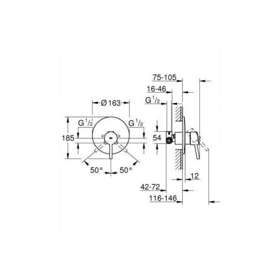 | Виднастенный монтаж, скрытый монтаж, однорычажный | Давлениеминимальное 1,0 бар | КартриджGROHE SilkMove керамический Ø 46 мм |
