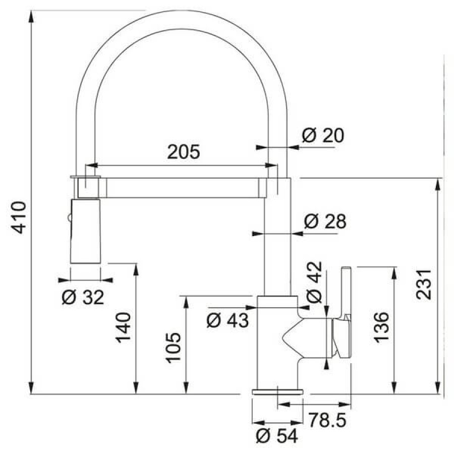 | Высота410 мм | Изливвысокий | Лейка/выдвижной изливда |