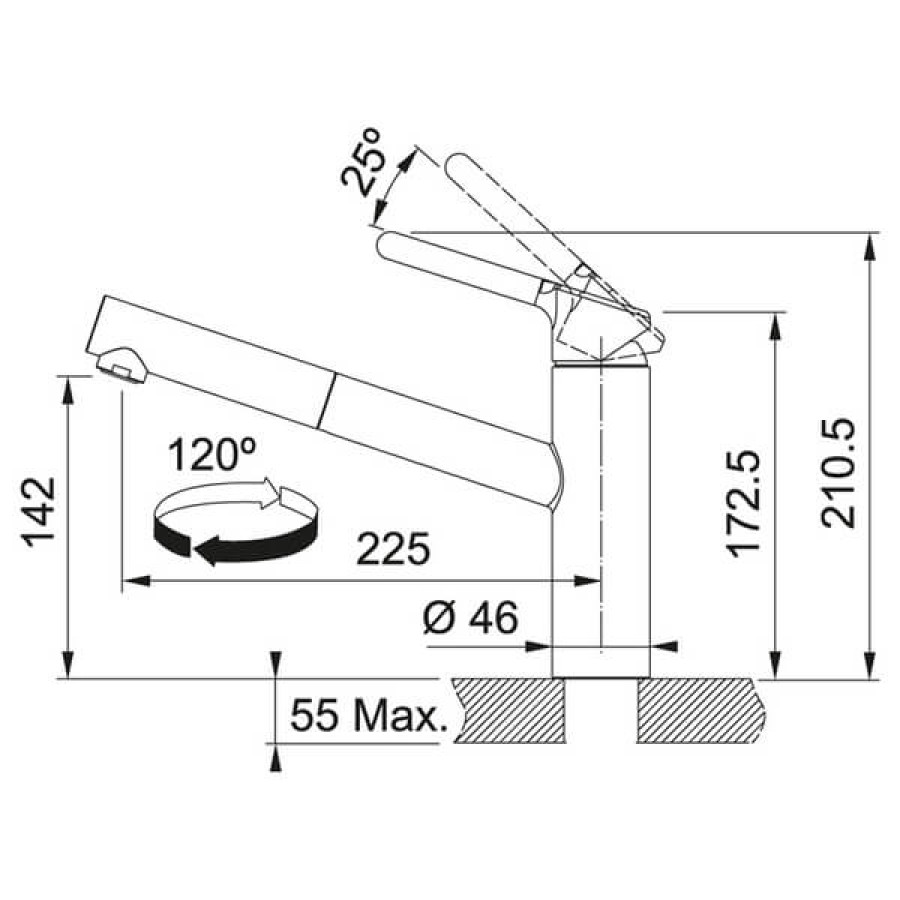 Технические характеристики Смеситель для кухни FRANKE Orbit с выдвижным шлангом, хром