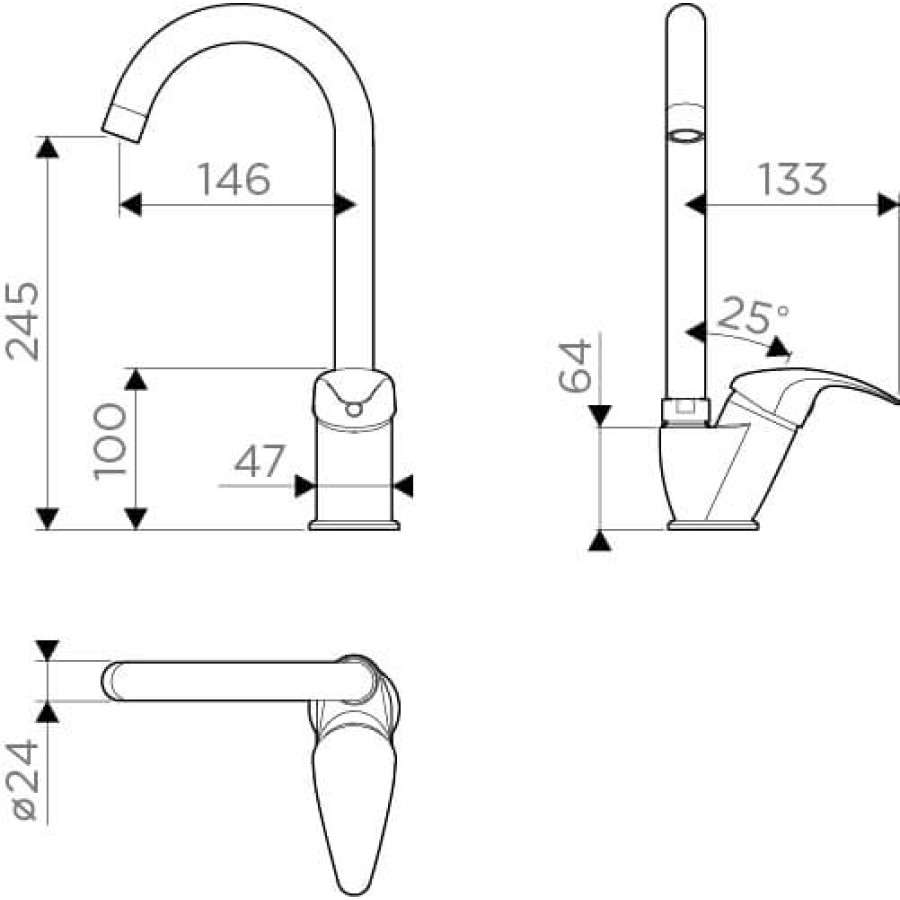 | Высота излива24 см | Гарантия60 | Изливповоротный |
